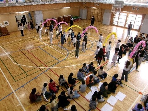 3月4日に6年生を送る会がありました。 1年生からのプレゼントの「メダル」を首から下げた6年生が、1年生と手を繋いで入場しました。