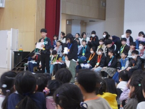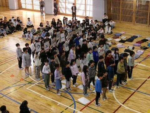 各学年から、6年生へ出し物を用意しました。 歌やクイズ、エールなど、様々な出し物で6年生を楽しませることができました。
