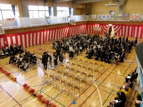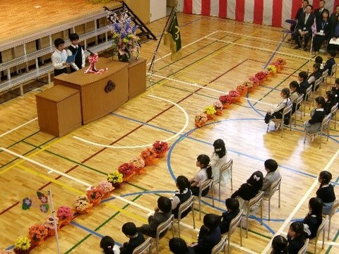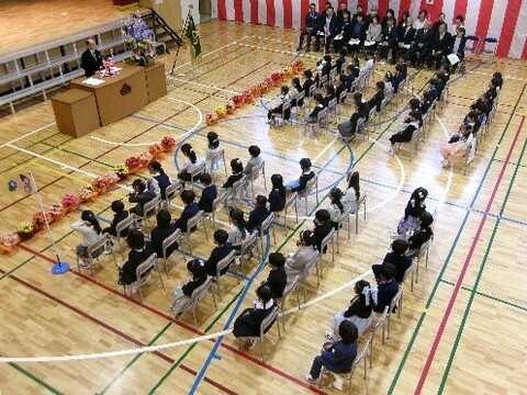 6日(月曜)に入学式を行いました。 緊張した表情で入場する子どもたち。