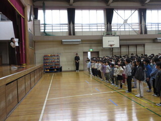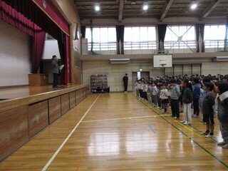 始業式後は、生活指導担当から、生活リズムと登校ルートに関しての話を行いました。