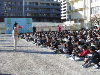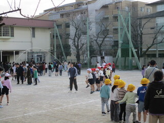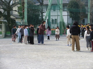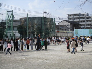 今週から中休みの長縄タイムが始まりました。クラスごとに自分たちの目標達成に向けチャレンジです。今週は寒波の影響で気温が低いのですが、こどもたちは元気に長縄にチャレンジしています。