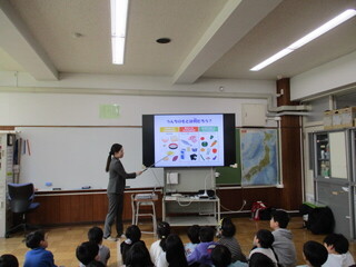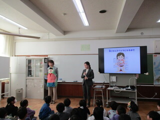 2年生は、学年で「バナナうんちで元気な子」の出前授業を実施しました。基本的な生活習慣や食育について学ぶことができます。早寝早起き朝ごはん!を継続することも重要です。