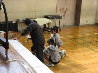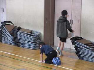 チーム千鳥の皆様がお声掛けくださり、日ごろ本校体育館を使用している団体の方たちが体育館清掃を実施してくださいました。卒業式に向けて、体育館がとってもきれいに。本校のこどもたちもたくさん参加してくれ、一生懸命に体育館をピカピカにしてくれました。