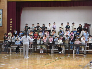 今日の音楽集会は、1年生の合奏発表です。1年間の学習の成果が表れた発表でした。見ていた2~6年生も温かい拍手を送っていました。