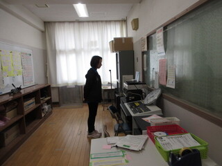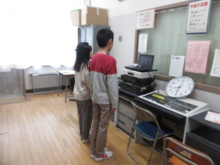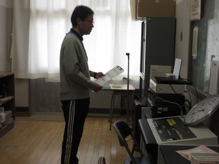体育館は卒業式の会場が少しずつ設営され、また、校庭は雨上がりだったので今日は放送による朝会です。今日も放送室まで低学年のこどもたちの元気な「おはようございます」が聞こえてきました。