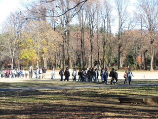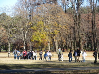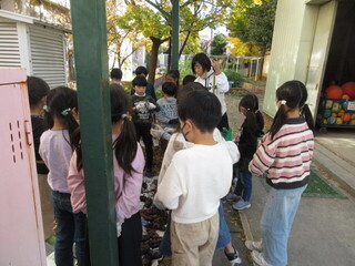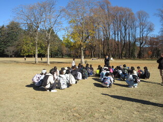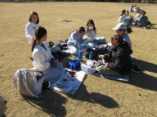 バスで移動し、小金井公園で昼食です。落ち葉がたくさんありましたが、広い公園で芝生の上はとても気持ちよかったです。「見て見て」とお弁当を見せてくれる子も多く、嬉しそうです。