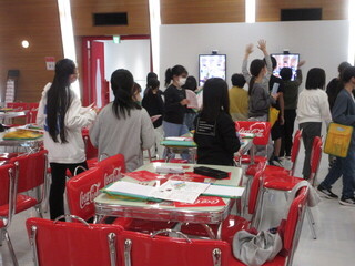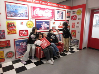 午後は、コカ・コーラ多摩工場の見学です。24時間、3交代制で工場は動き続けているとのこと。ペットボトル自体の作られ方やリサイクル、コカ・コーラの原材料などたくさんのことを教えていただきました。機械が動き続けている様子も見せていただきました。普段、お店で見たり、実際に飲んだりしている製品がここで作られていると思うとすごいですね。