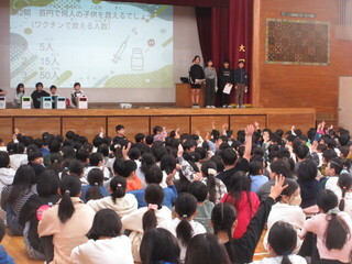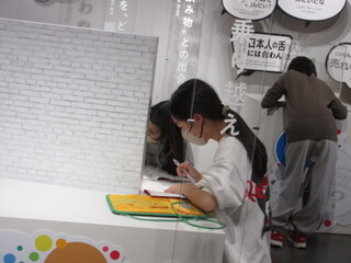 ユニセフ募金がどのように使われるか、100円でどんな支援ができるかなどクイズ形式で行われました。2日間ですが、ぜひ協力よろしくお願いします。