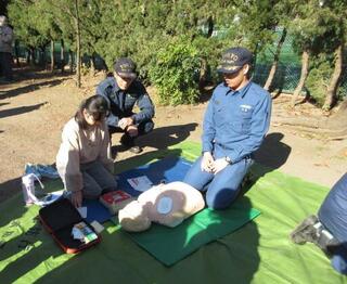 今日は、千鳥南町会の防災訓練がありました。つきやま公園で煙体験やAED、消火体験といった様々な体験ができました。こどもたちも家族の方と一緒に大勢参加していました。特にAEDや消火器などは初めて触る子も多かったようです。