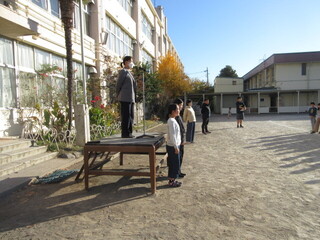 今朝も6年生が、元気のよい挨拶で全校朝会をスタートしてくれます。今日は、2学期の締めくくりをすることや、荷物を計画的に持ち帰りましょう、ということも全校に呼び掛けてくれました。