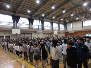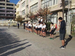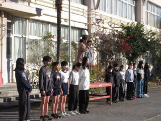 終業式後には、大田区小学生駅伝大会の表彰と生活指導担当から冬休みの生活について話がありました。