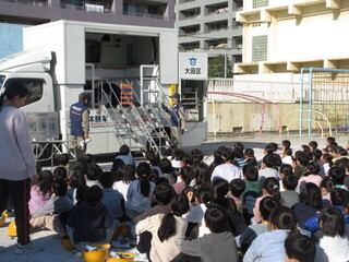 今月の避難訓練は、地震からの火災を想定した訓練でした。大田区の起震車にも来ていただき、4、5年生は起震車体験もしました。頭を守ることを心掛けますが、複数の人がいて、大きく揺れているとなかなか難しい様子です。いざというときに、訓練が生かされるようにしていきたいと思います。