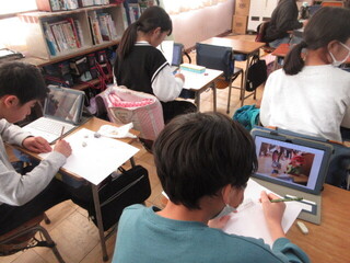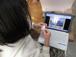 タブレット端末を使ってコマ送りの動画を制作していました。登場する道具を工夫したり、展開を工夫したり、背景画を描いたりと楽しみながら取り組んでいました。「元気ですか」という言葉を口形で表現しようと挑戦しましたが、データが保存できず断念。今日も課題に一生けん命取り組んでいました。