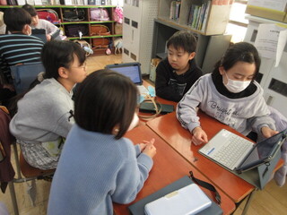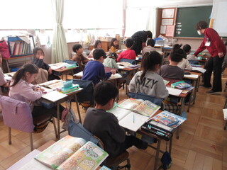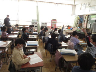 5年生は、2クラスとも「情報とわたしたちの生活のかかわり」についてまとめていました。日々、どんな情報が入ってくるか、そして、どう我々は活用したり選択したりすべきか。資料を読み取ったり、友達と話し合ったりしながら、自己の意見を発表しています。