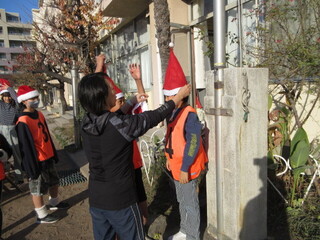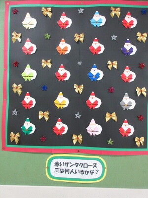 ※写真のサンタの掲示物は、チーム千鳥の方が作成くださったものです。1年生の玄関前なので、いつも1年生がサンタを数えていました。