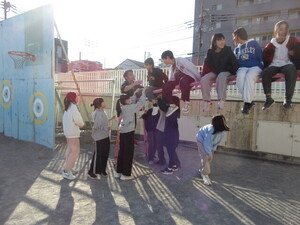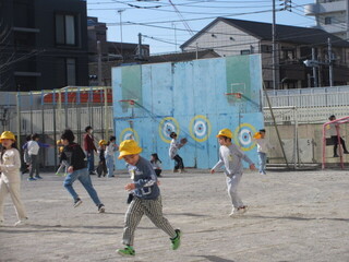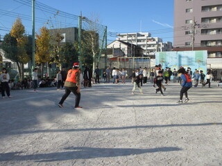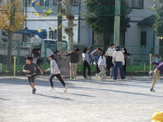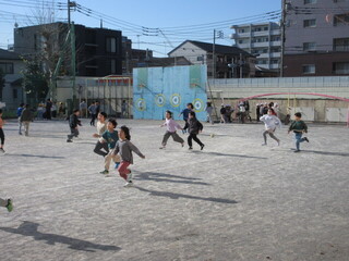 気温は低くても、中休み、たくさんのこどもたちが校庭で元気に遊んでいます。鬼ごっこをしている学年も多く、「仲間に入れて。」「いいよ。」と、遊ぶ仲間が広がっていました。