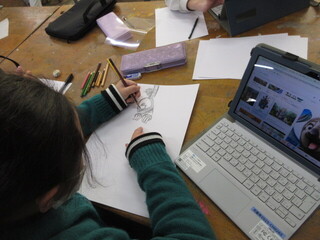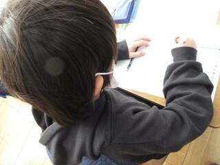 物語を作っているところでした。絵を書き込んだり、構成を確かめたり。想像力を働かせ、自分だけの作品が出来上がってきているようです。