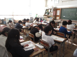 今日は、各クラスで学習にまとめを行っていました。これまでに習ったことを思い出しながら、問題に挑戦です。