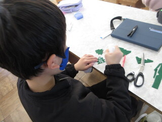 2学期のクラブも今日で終わりです。手芸クラブは、クリスマスツリーのオーナメントを作る子が多かったです。サンタや雪だるまなど、細かい作業に集中しています。イラストクラブでは、今度、校内で作品掲示をする予定とのこと。掲示用の作品を一生懸命に書き上げていました。