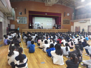 朝は、代表委員会によるユニセフ集会でした。明日から2日間、朝の時間に募金活動を行います。