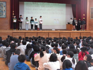 最後は、保健委員会から「ハンカチ・ティッシュ」の持ち物をそろえることについての取組の発表がありました。今週もがんばりましょう。