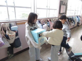 今日、明日と2日間、ユニセフ募金の活動をしています。朝、各階で募金箱を持ってくれている代表委員会のこどもたちのもとに届けてくれていました。ご協力ありがとうございました。