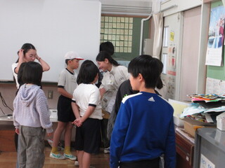ALTの先生と二人での会話です。質問や説明を準備しているとはいえ、会話を楽しんでいる様子で、ALTの先生の反応に対しても上手に対応していて驚かされました。コミュニケーションを楽しんでいる姿がさすが6年生です。