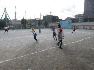 ボールを投げたり、キャッチしたりしています。両手で投げたり、捕ったり。高低には、にぎやかな声が響いていました。