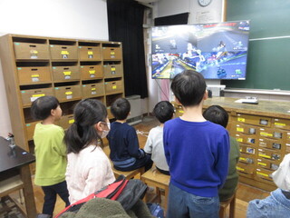 途中、2・6会の皆さんのご配慮で教員も参加させていただきました。普段、ゲーム機を触ることがないので、苦戦しましたが、こどもたちが「もっと~だよ。」「これ押すと~なるよ」と全て教えてくれました。ありがとう!