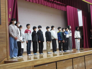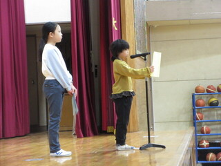 今回は、3年生の代表児童が二学期の振り返りと三学期の目標を発表しました。二人とも、とても素晴らしい発表でした。