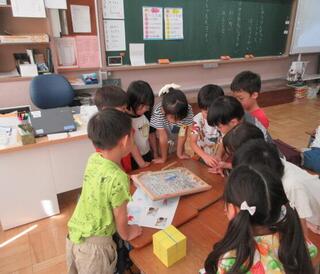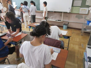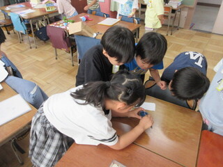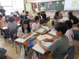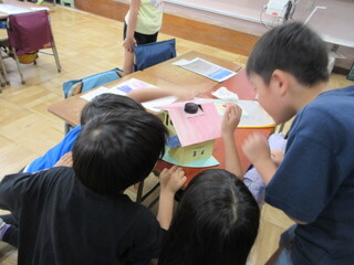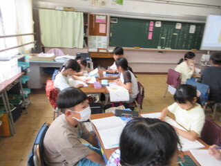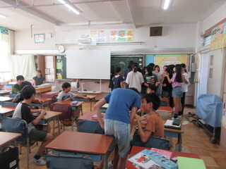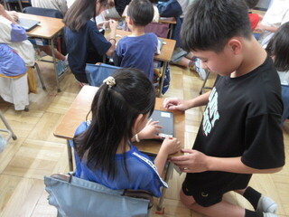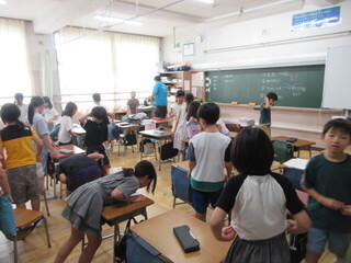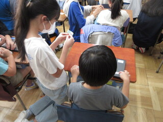 4年生 自由研究の発表と夏休みの出来事ビンゴの様子です。