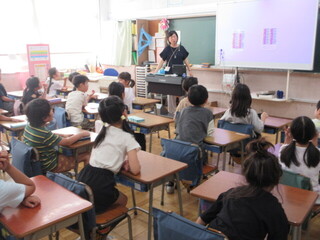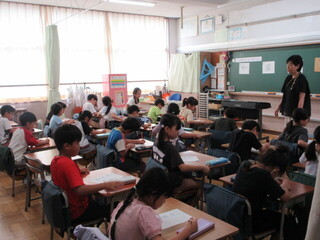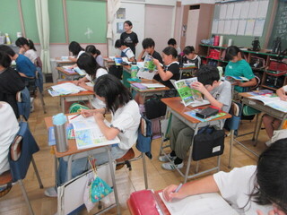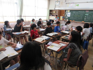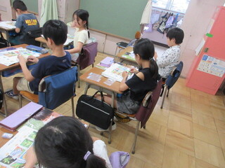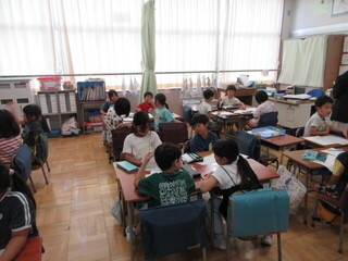 3年生 漢字の学習の確認をするクラス、フルーツバスケット後の片づけをするクラスです。学級文庫の本も増えたようです。転入生も入って、みんなで楽しく過ごせたでしょうか。