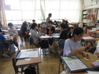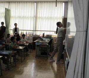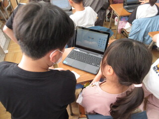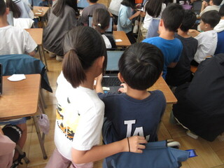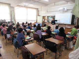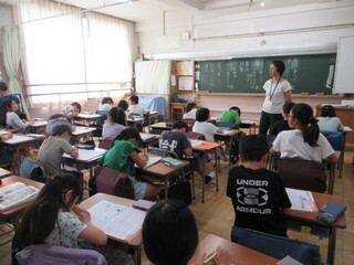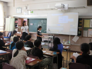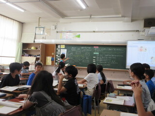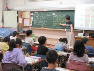 しっかりと考え、自分の意見を伝えようとする子が、とても増えています。高学年としての自覚が見られ、頼もしく感じます。教室の座席も工夫されており、発言者の表情を見やすい環境が整えられていました。