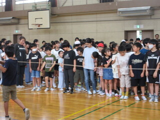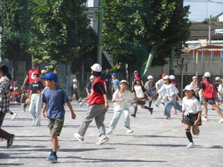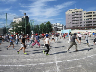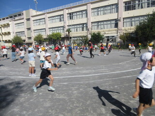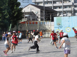 1~3年生、4~6年生に分かれて実施しましたが、最後まで逃げ切った人もいます。朝から、みんなで体を動かして気持ちのよいスタートです。前期集会委員のみなさん、おつかれさまでした!