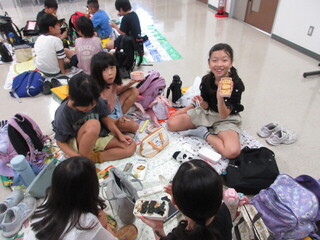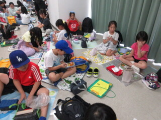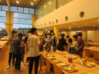ハイキング後、とうぶ休養村に到着。開園式を行い、荷物整理の後、入浴です。