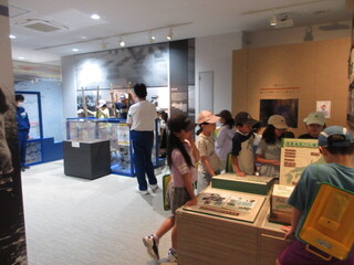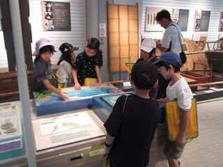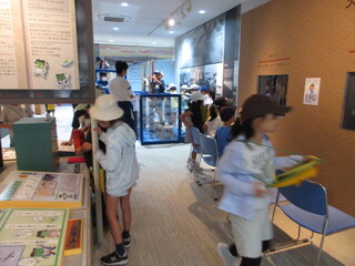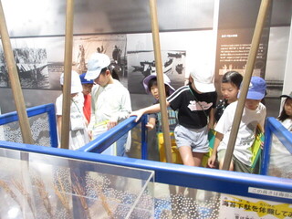 そして、大森海苔のふるさと館へ。こちらで昼食のお弁当も食べさせていただきました。昼食後は、施設の方のお話を聞きました。知らないことがたくさんあり、こどもたちは「え~」「そうだったんだ」など、反応しながら、メモを一生懸命にとっていました。施設内は、クラスごとに見学をします。ちょうど、区立中学の2年生が職場体験でお仕事をしており、千鳥小の子たちにも大変丁寧に教えてくれました。