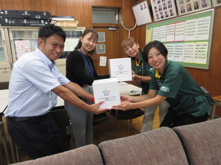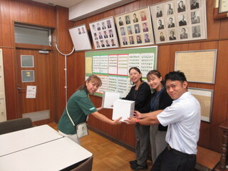 1学期に6年生は、明治安田生命の方を招き「おおたの未来づくり」の学習を実施しました。本日は、明治安田生命の方々がプレゼントを持ってきてくださいました。こちらがお礼すべきところなのですが、運動会でも使えるグラウンドコーンです。ありがとうございます。早速、10月の運動会練習から使わせていただきます。