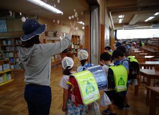 学校探検で2年生は1年生のお世話をとても上手にできました。