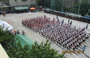 13:40 朝礼台まえに高学年は集合。いい姿勢です。