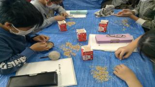 総合的な学習の時間で精米までした、自分たちのお米も混ぜて調理しました。