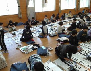 いつもより長い紙、いつもと違う姿勢に苦戦しながらも、一画ずつ丁寧に書くことができました。