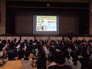 自転車の乗り方、きまりについてどの程度理解しているのか、交通安全指導員の皆様が質問を交えながら、最新のきまりについてご指導くださいました。こどもたちは、自信があるものもあれば、知らなかったものもあったようです。手軽で便利な乗り物ですが、被害者にも加害者にもなってしまうことを改めて学ぶことができました。年末年始に限らず、こどもたちには常に交通ルールを意識して、安全に過ごしてほしいものです。