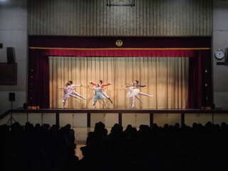 本物のバレエ団の踊りを実際に見ることはなかなかありません。そんなこどもたちにぜひ間近でダンサーの踊りを見せたいと思い、この企画が実現しました。国内で活動しているバレエ団の皆様の演技を観ることはもちろん、今回は希望したこどもたちが、団員の皆様よりご指導をいただき、こどもたちの前で演技をするというプログラムもありました。バーを使って足を上げたり、挨拶の仕方を学んだり、初歩的な所作を教えていただきました。緊張した面持ちだったこどもたちも時間が経つにつれ、真剣な表情に変わってきました。白鳥の湖はもちろん、次々と有名な演目を披露してくださり、また場面の解説もしてくださったので、何を表現しているのかも理解しながら、楽しむことができました。メンバーの中には本校の卒業生がいたというサプライズもあり、とても貴重な時間となりました。バレエ団の皆様、ありがとうございました。