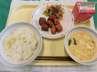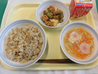 11月24日は、和食の日です。1124を「いい日本食」と読むことから「和食の日」となりました。今日の給食は、和食の味の基本である「だし」を使った献立です。「だしで味わう和食の日」というプリントも配布しますので、ぜひ読んでみてください。