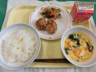 今日の給食には、鶏のから揚げが出ます。鶏のから揚げは、いつからあるでしょう。