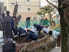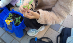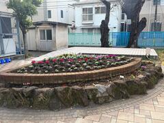 スクールサポート調布大塚の取り組みで正面玄関前、校庭の花壇整備をしていただきました。