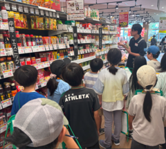 学校の近くのスーパーマーケットに行き、お店の人からスーパーマーケットの工夫についてお話を聞きました。