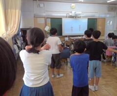 伊豆高原学園移動教室に向けラジオ体操の練習中