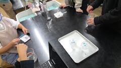 理科「物のとけ方」では、物がとけるとはどういうことなのか、水の量や温度の変化と物がとける量にはどのような関係があるのか、とけた物を水から取り出すにはどうしたらよいのか、について実験を通して学習しています。