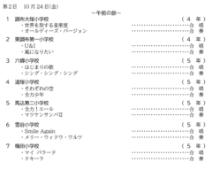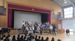 10月の音楽朝会は、連合音楽会に出演する4年生が演奏を披露しました。曲目は、合唱「世界を旅する音楽室」合奏「オールディーズ・バージョン」です。歌は4年生らしい元気なかけ声が印象的です。合奏は、しっとりと歌うように演奏してました。連合音楽会でがんばってきた成果を思い切り表現してきてほしいです。
